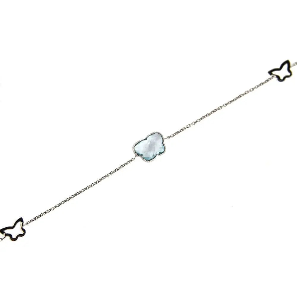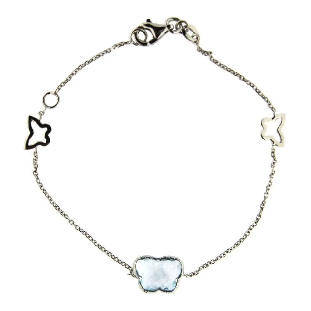 Introducing the 18K Solid White Gold Faceted Blue Topaz Butterfly Bracelet – a masterpiece crafted in Italy, designed to enchant and captivate. This exquisite bracelet features a stunning faceted blue topaz butterfly centerpiece, beautifully flanked by two elegant open butterflies, creating a symphony of sophistication and charm.