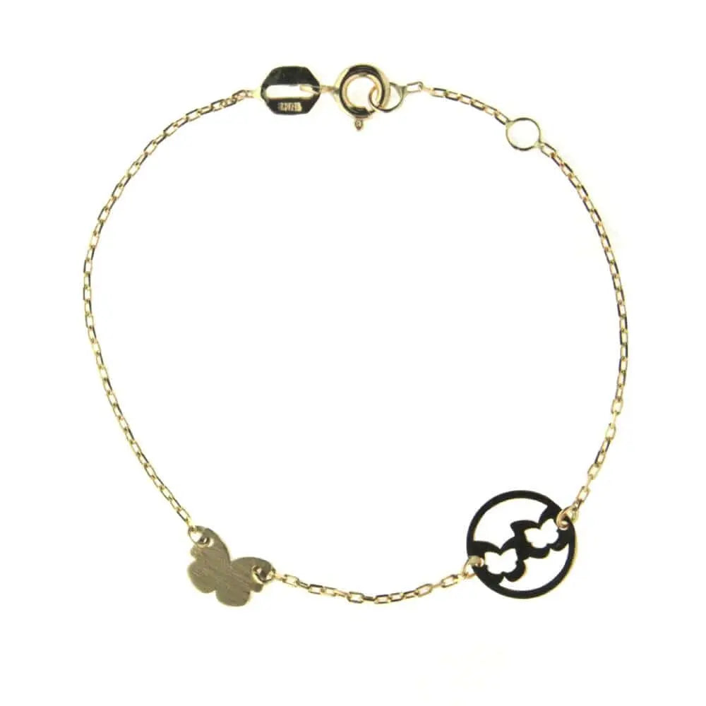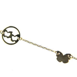 18KT Yellow Gold Circle with Flowers and single Flower Bracelet 7 inches