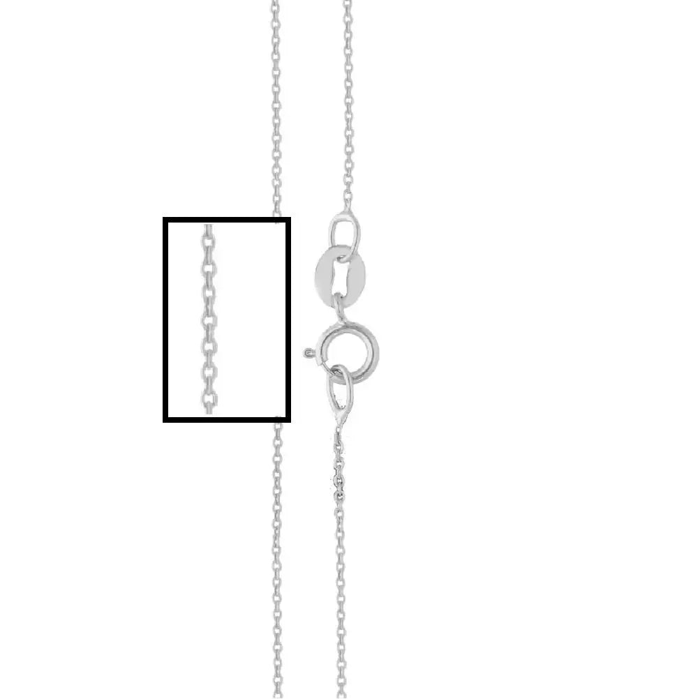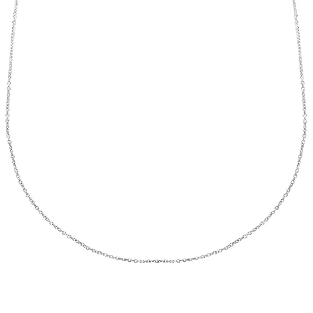 Introducing the epitome of minimalist luxury with our 18k Solid White Gold Thin Rollo Chain Pendant 0.82mm Wide , meticulously crafted in Italy. This 0.82mm wide chain is made from hypoallergenic 18k white gold enhanced with rhodium, ensuring it is free from lead and nickel for your safety and comfort.
