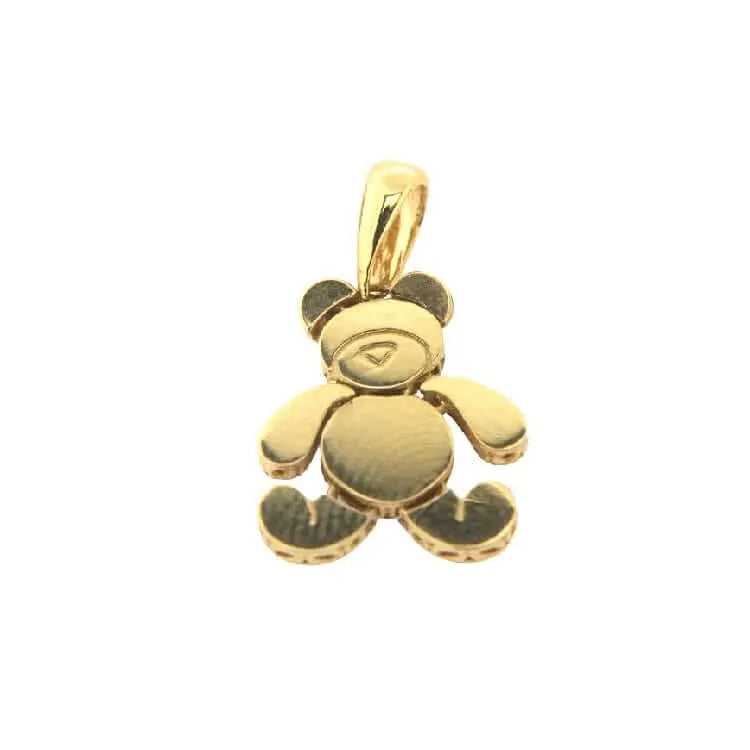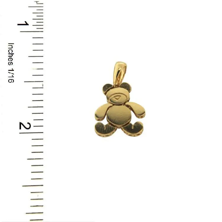 18K Solid Yellow Gold Articulated Teddy Bear Pendant