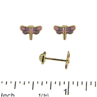 Enchanting 18K Yellow Gold Pink and Lilac Dragonfly Screwback Earrings: A Treasure for Young Bug Enthusiasts