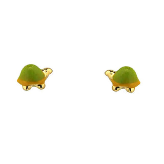 18K Yellow Gold Small Green Enamel Turtle Screwback Earrings
