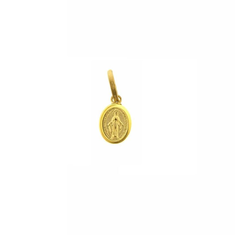 Erleben Sie die perfekte Verbindung von Glauben, Eleganz und Handwerkskunst mit unserer 18-karätigen Massivgold Mini-Wundertätigen Medaille mit poliertem Rand. Mit den Maßen 0,34 x 0,26 Zoll (8,64 x 6,6 mm) ohne Öse und 0,62 Zoll (15,75 mm) mit Öse zeigt diese sorgfältig gefertigte Medaille filigrane Details mit einem Kreuz und Sternen auf der Rückseite, die sie zu einem wahren Kunstwerk erheben, das von Hingabe und feinem Geschmack zeugt.