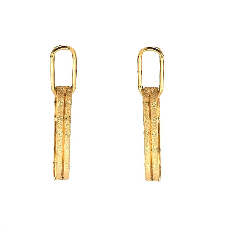 Heben Sie Ihren Schmuckstil mit unseren 18 Karat massiven Gold langen satinierten und polierten Büroklammer-Ohrringen mit Stecker hervor, einem zeitgenössischen Statement, gefertigt mit feiner italienischer Handwerkskunst. Aus hypoallergenem 18 Karat massivem Gelbgold gefertigt, zeigen diese auffälligen Ohrringe ein markantes Design – ein polierter oberer Glied verbunden mit verlängerten satinierten Doppelgliedern – mit den Maßen 4,3 x 0,8 cm für die perfekte Balance aus Anmut und Wirkung.