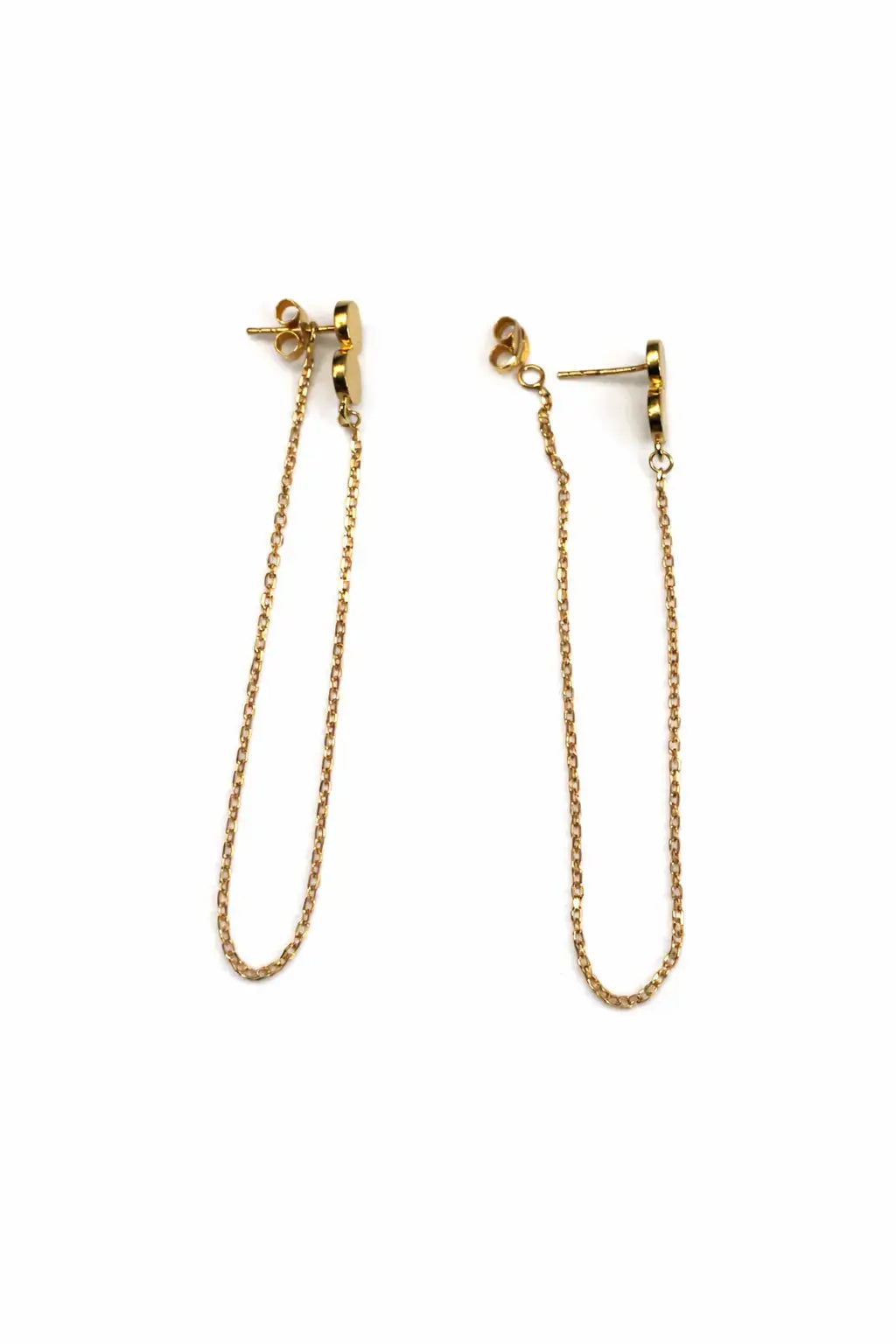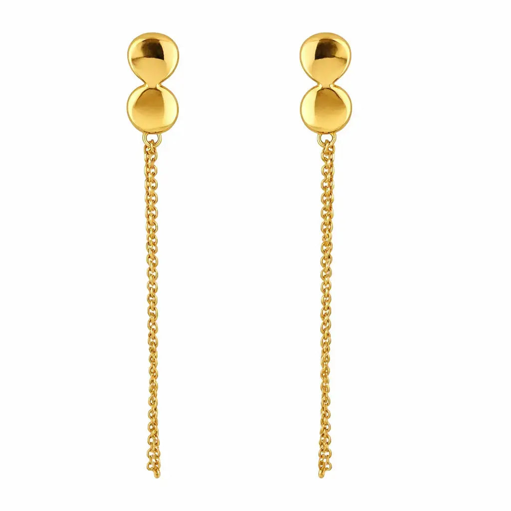 18 Karat Gelbgold Massiv Doppelkreis Hängende Kette, die am Ohrstecker befestigt wird und eine Schlaufe bildet. Länge 5 cm