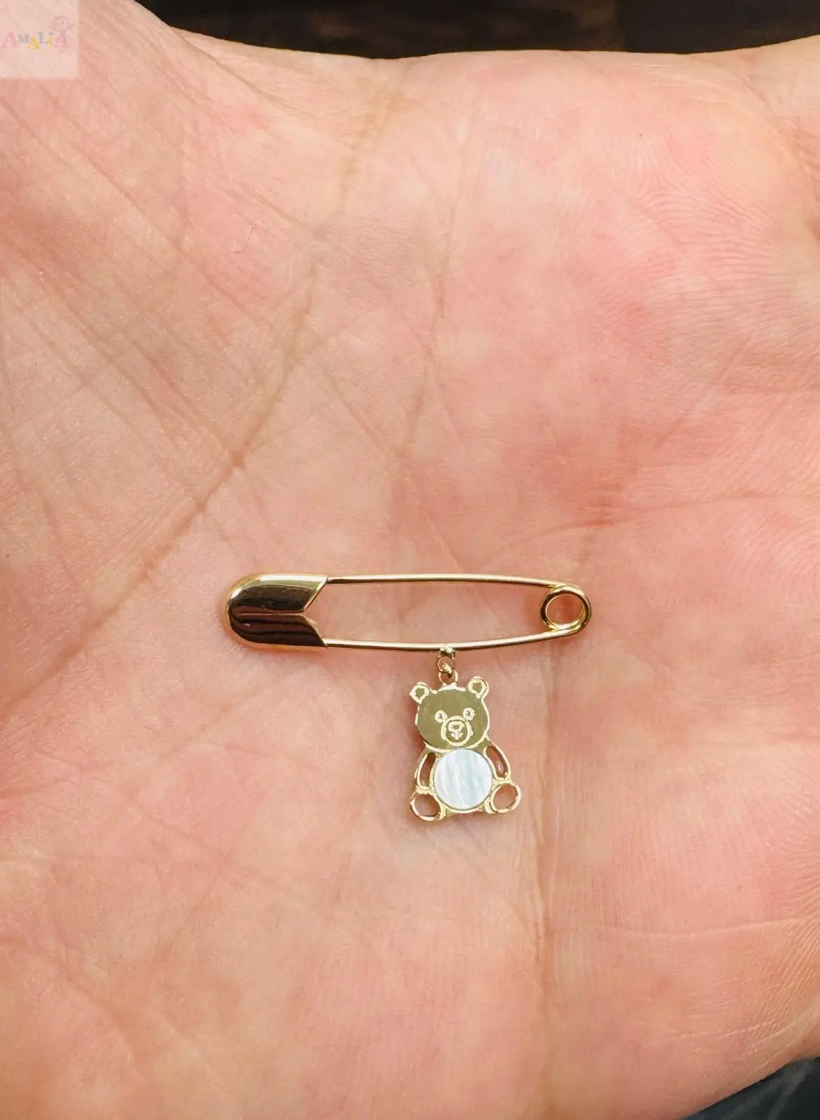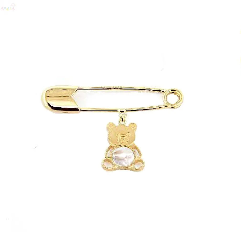 Celebra la nueva vida con el encanto y la calidez de nuestro prendedor de seguridad de oso de peluche en nácar y oro amarillo macizo de 18K, una pieza sentimental hecha a mano en Italia. Este prendedor de seguridad de 1 pulgada está hecho de oro amarillo macizo de 18K hipoalergénico, libre de plomo y níquel, garantizando un uso suave y calidad duradera.