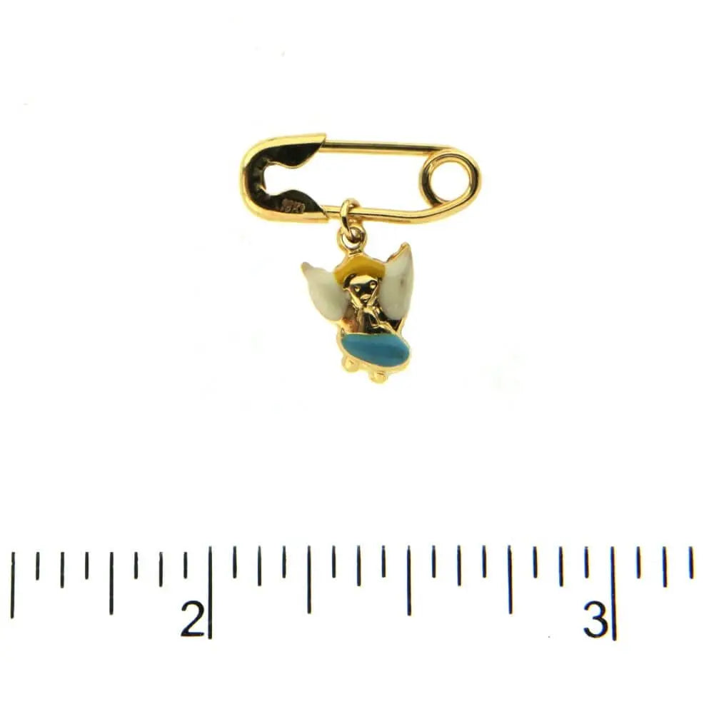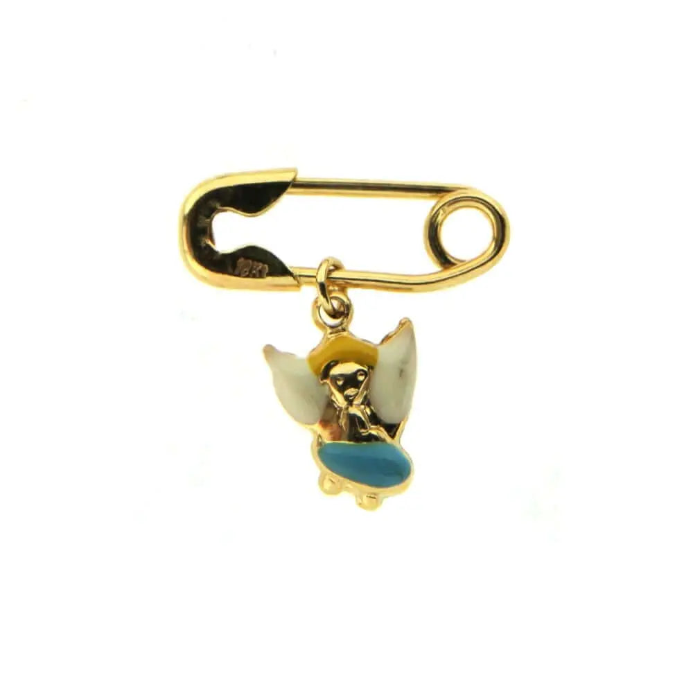 Pin de ángel de esmalte azul en oro amarillo de 18K (17mm X 5mm/6mm ángel)