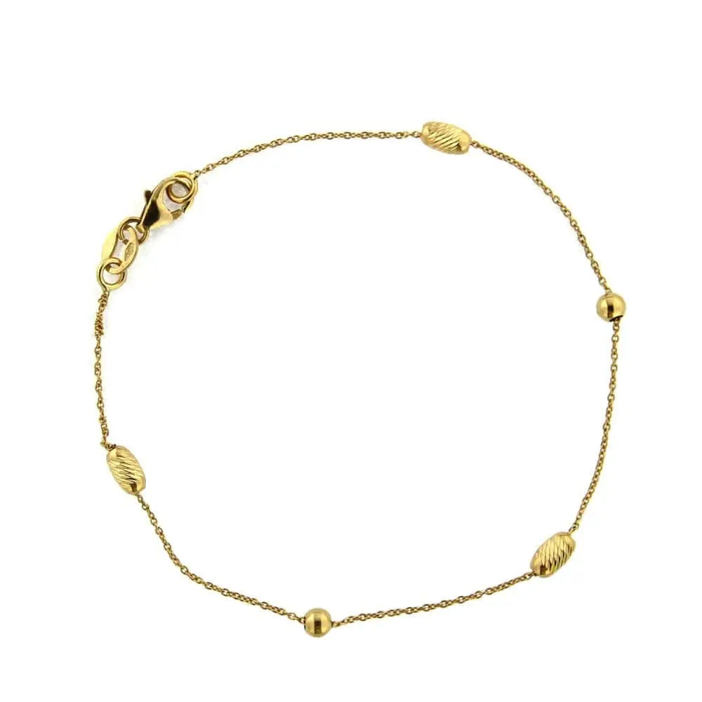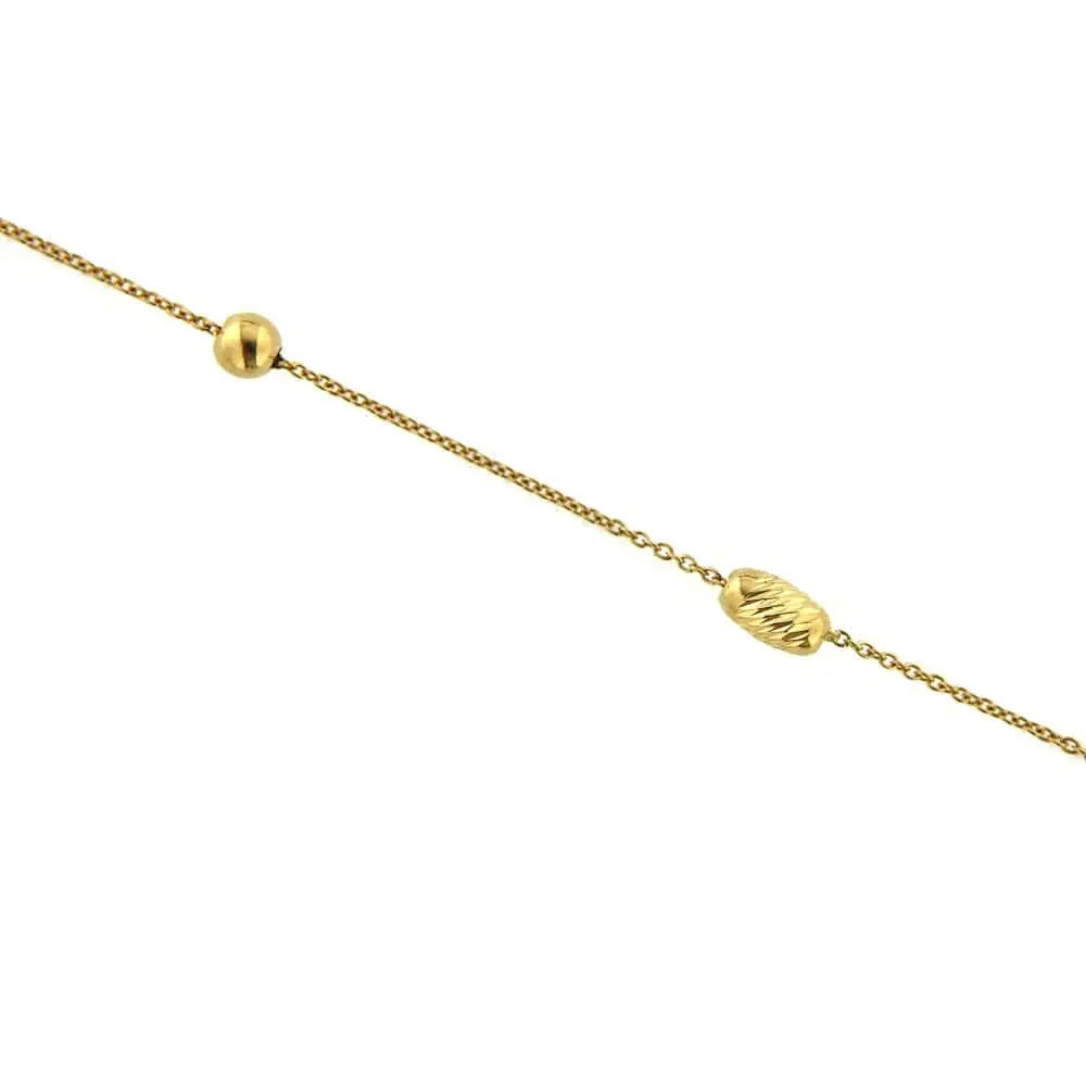 Pulsera de oro amarillo de 18k, perfecta para niñas entre 5 y 15 años. Mide 6 pulgadas de largo, esta pulsera presenta cuentas pulidas y una esfera con corte ovalado de diamante, elaborada con oro hipoalergénico de 18k. Su diseño minimalista, con líneas limpias y formas simples, la convierte en una pieza atemporal que nunca pasará de moda. Presentada en una elegante caja y bolsa de regalo Amalia, esta pulsera es el regalo perfecto para cualquier ocasión especial, desde cumpleaños hasta graduaciones. Añade un toque de lujo y sofisticación a su colección de joyas y compra esta impresionante pulsera minimalista ahora.