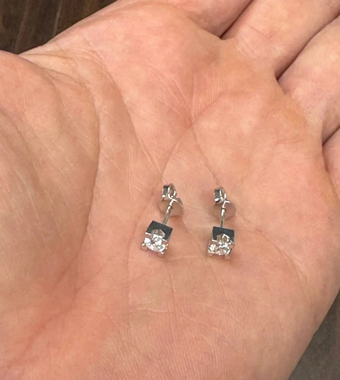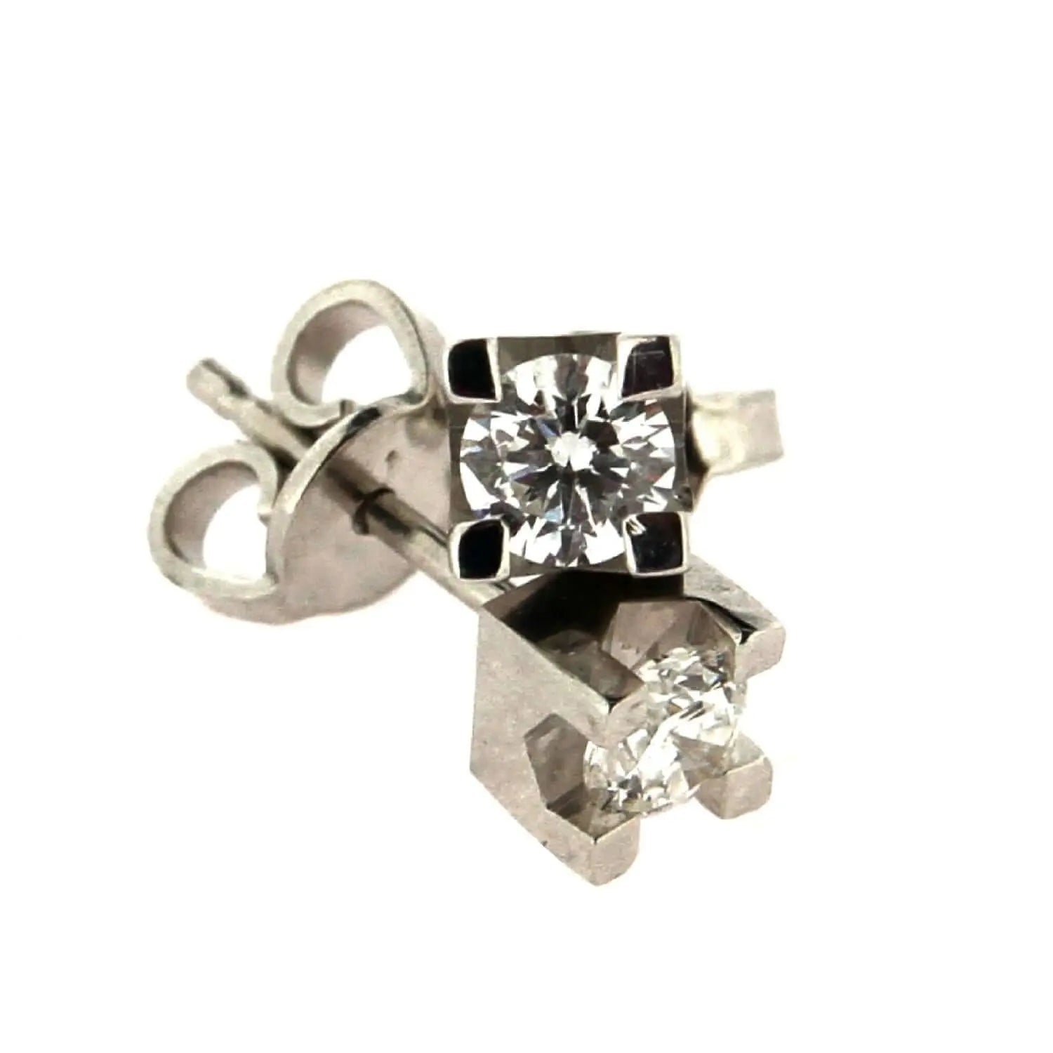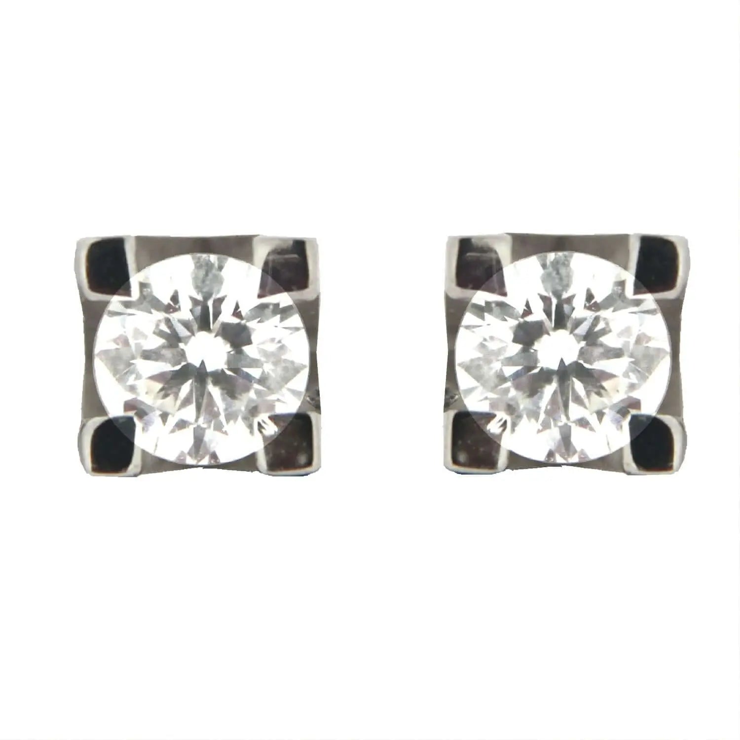 Adéntrese en el reino de la sofisticación contemporánea con nuestros pendientes de diamantes de 0.50 ct totales en oro blanco macizo de 18k, con un engaste cuadrado de 4 garras, que exhiben una artesanía exquisita y un peso total de diamantes de 0.50 quilates. Adornados con deslumbrantes diamantes de color GH y claridad SI1, estos pendientes de poste son un testimonio de la finura del diseño italiano.