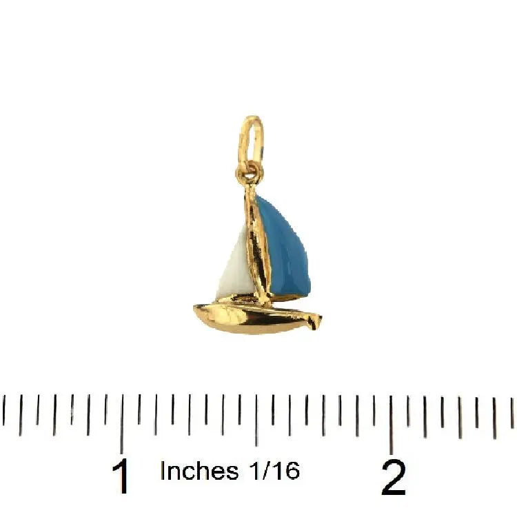 Este colgante acolchonado de barco de vela esmaltado en azul y blanco de oro amarillo de 18k es una opción hermosa e hipoalergénica perfecta para los amantes de los barcos de vela. Mide 0.61 x 0.51 pulgadas, está diseñado para niños e incluye una caja de regalo Amalia Blue para un obsequio memorable y elegante que se apreciará durante años. Deja que este exquisito colgante sirva como símbolo de aventura y libertad, inspirando sueños de navegar por los mares abiertos y explorar nuevos horizontes. Emprende un viaje de imaginación con este encantador colgante, un recordatorio de la alegría y maravilla de las mayores aventuras de la vida.