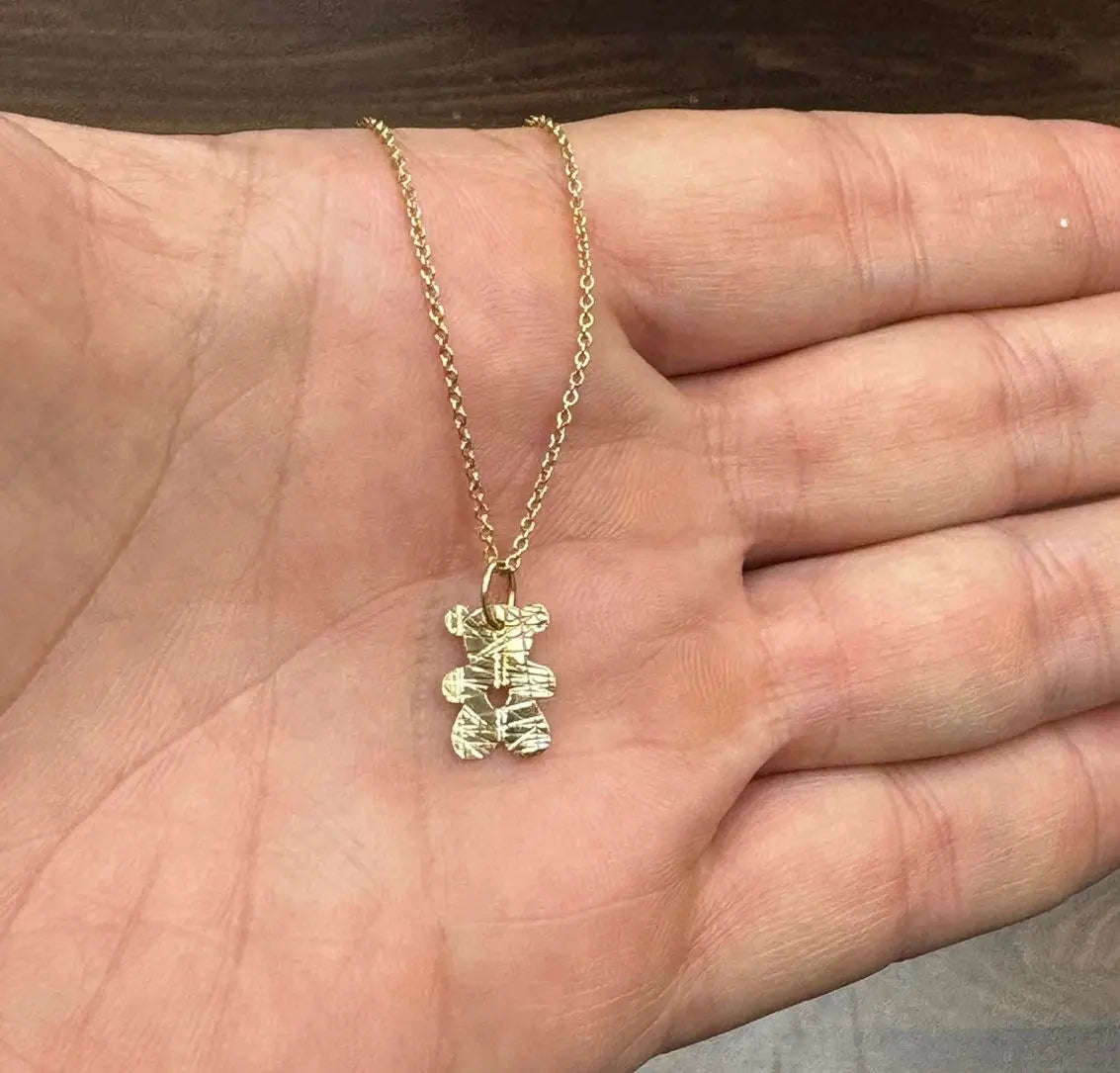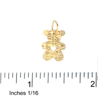 Agrega un toque de elegancia y encanto a tu colección de joyas con nuestro exquisito colgante de oso de peluche en oro amarillo macizo de 18K con corte de diamante. Este pequeño colgante, que mide 0.46 x 0.34 pulgadas (12 x 8 mm) sin la anilla, presenta un impresionante diseño con corte de diamante tanto en su parte frontal como trasera. En su centro, un encantador corazón recortado añade un toque de amor, convirtiéndolo en una pieza cautivadora. Su forma única, plana y cóncava, lo convierte en una adición versátil, perfecta para adornar una cadena delgada o realzar una pulsera de dijes. Fabricado en oro amarillo hipoalergénico de 18k, el colgante garantiza tanto comodidad como durabilidad. Ideal para quienes buscan añadir un toque juguetón pero sofisticado a su conjunto o para quienes buscan el regalo perfecto, este colgante de oso de peluche, con su diseño intrincado y material de alta calidad, está destinado a ser una adición apreciada en cualquier colección.