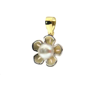 Colgante de ostra pulida de oro amarillo macizo 18K con perla cultivada 0.24 x 0.26 inch