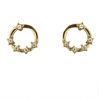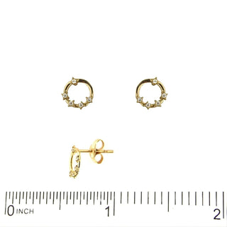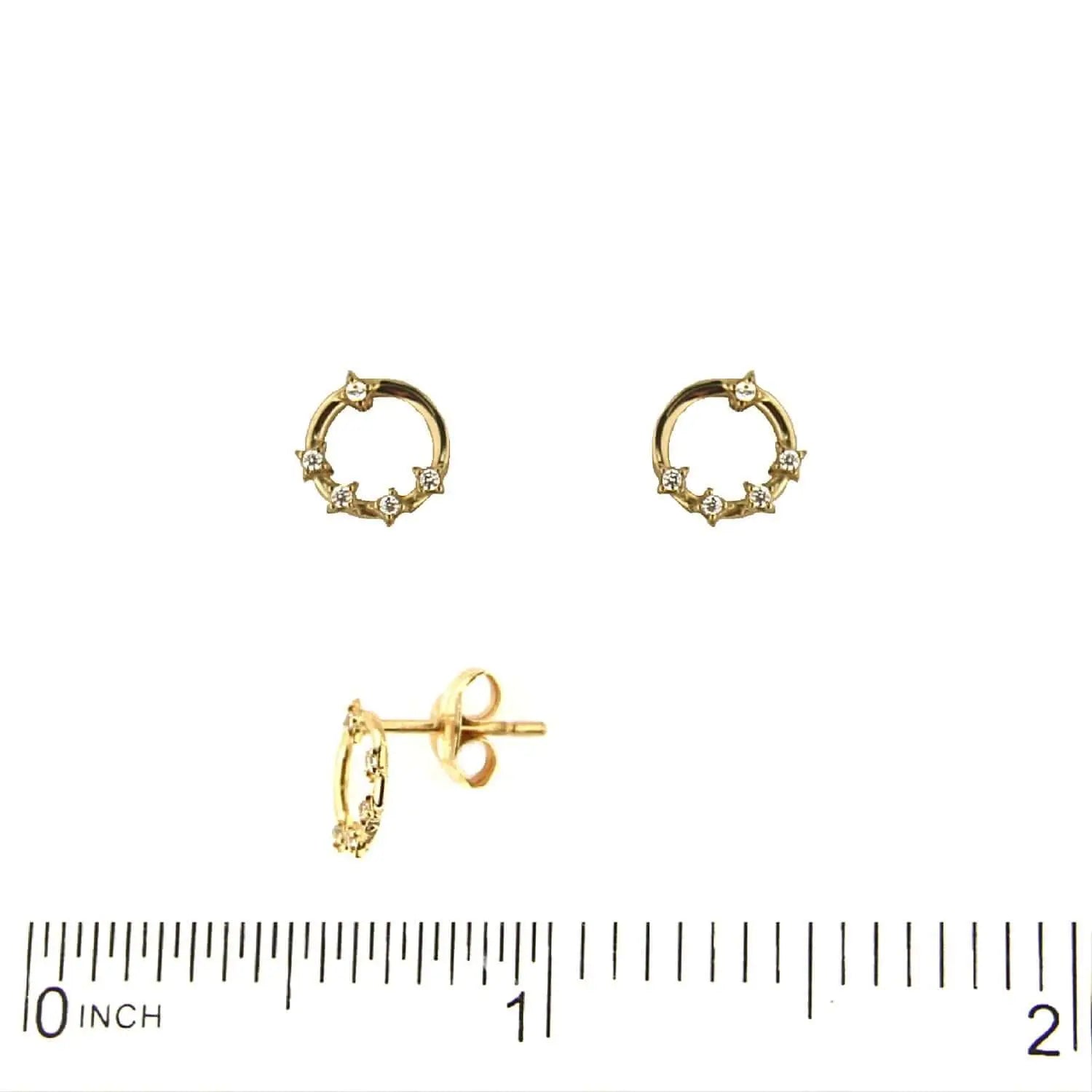 Brilla con nuestros pendientes de poste con estrellas de circonita cúbica en oro amarillo macizo de 18K y pequeño círculo abierto. Con un diámetro de 0.31 pulgadas (7.90 mm), estos pendientes están fabricados con oro hipoalergénico de 18K, ideales para niñas de 12 años en adelante. Completos con una caja de regalo y bolsa Amalia, son una elección de regalo perfecta, añadiendo un toque celestial de elegancia y brillo a cualquier atuendo.
