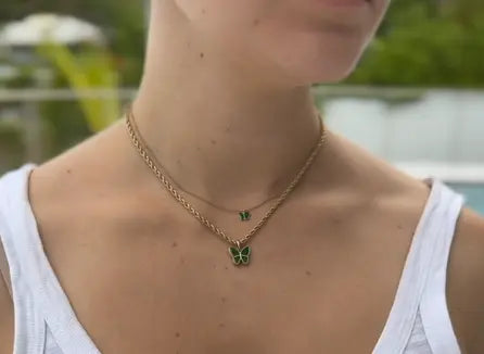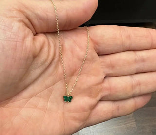 Un toque de gracia verde: collar pequeño de mariposa de malaquita de oro amarillo de 18k