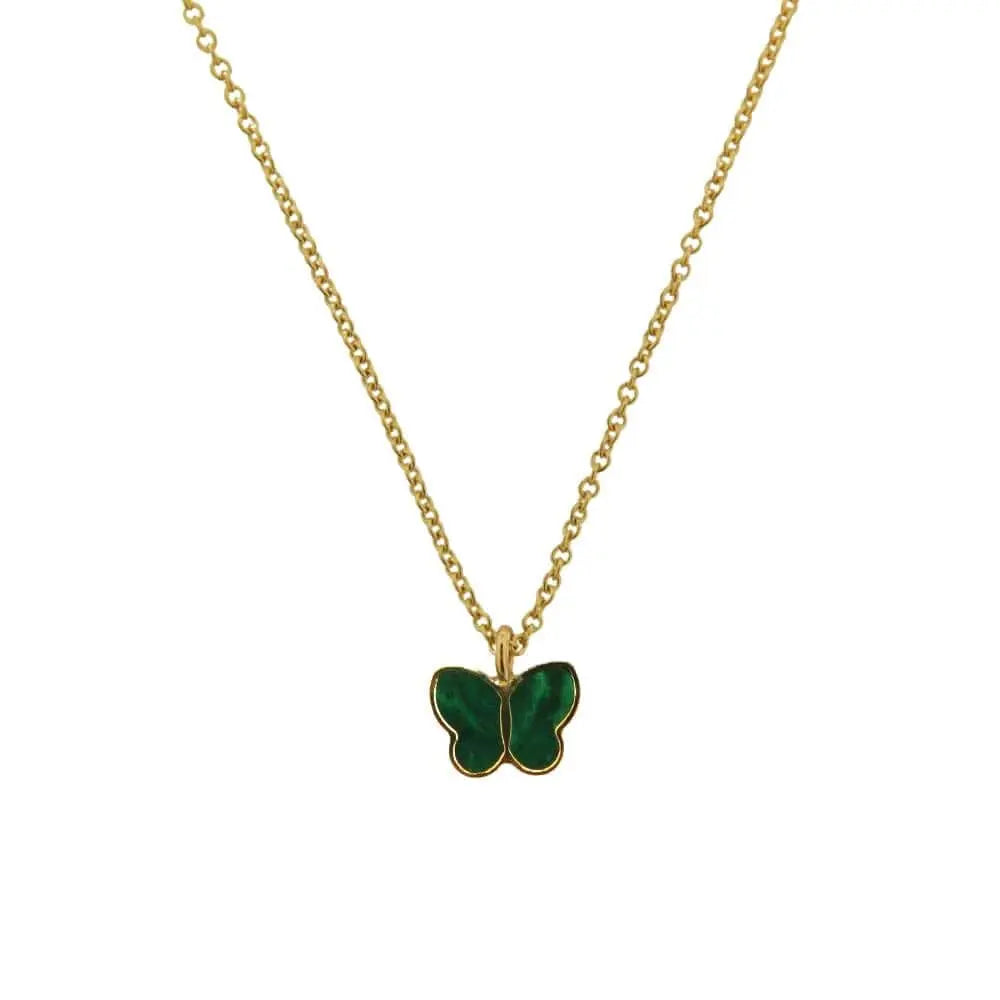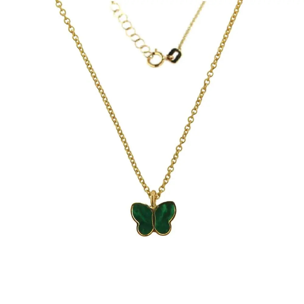 Collar pequeño con colgante de mariposa de malaquita en oro amarillo de 18k