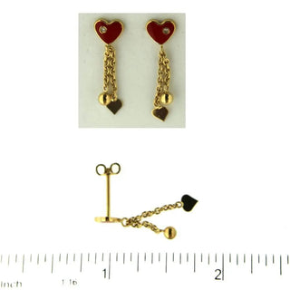 Pendientes de corazón con esmalte rojo, cierre de tornillo, de oro amarillo macizo 18K con colgantes de diamante