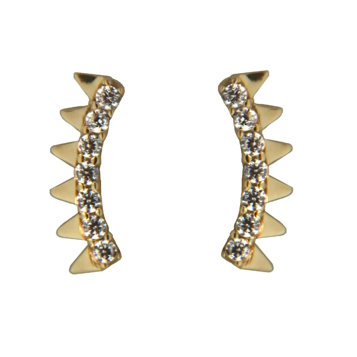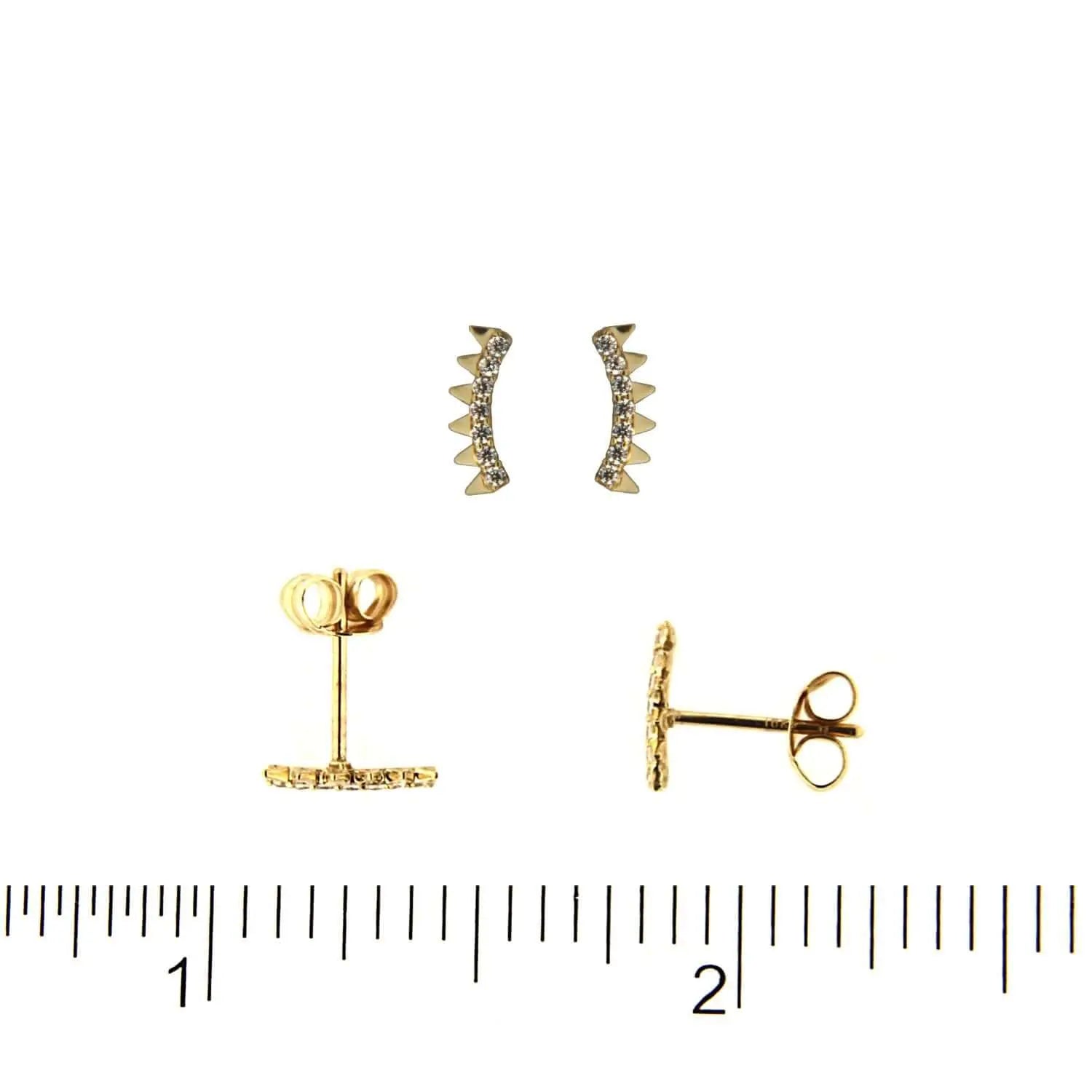 Pendientes pequeños de poste con circonia y triángulos de oro de 18K