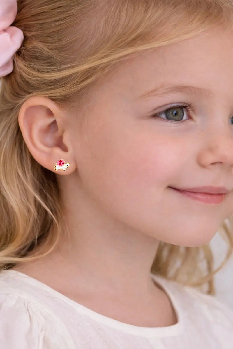 Pendientes de poste de tortuga blanca de oro amarillo 18KT.