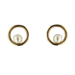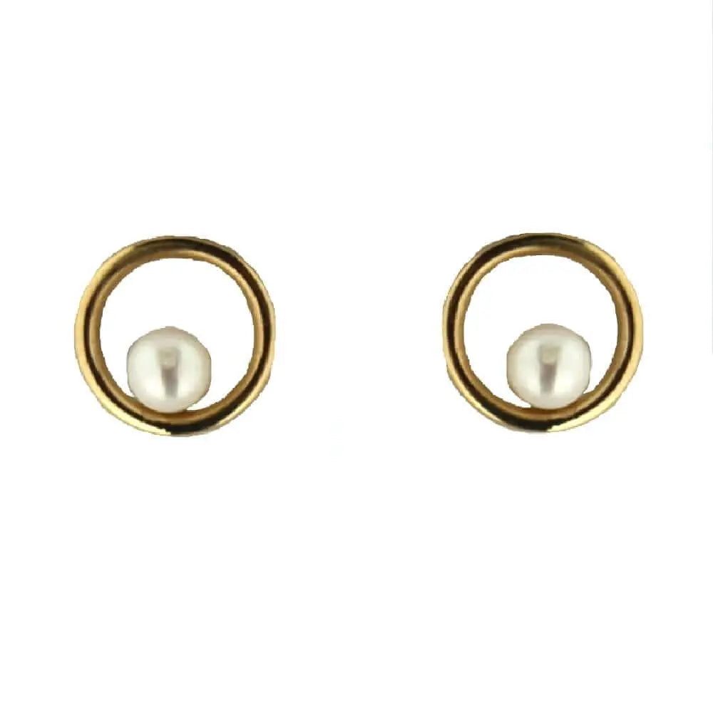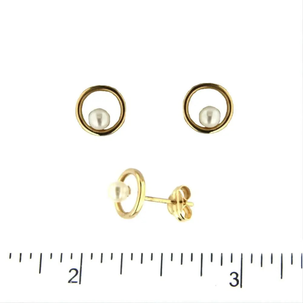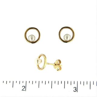 Aros con poste de círculo abierto de oro amarillo de 18K con perla cultivada de 3 mm, diámetro de 0.31 pulgadas