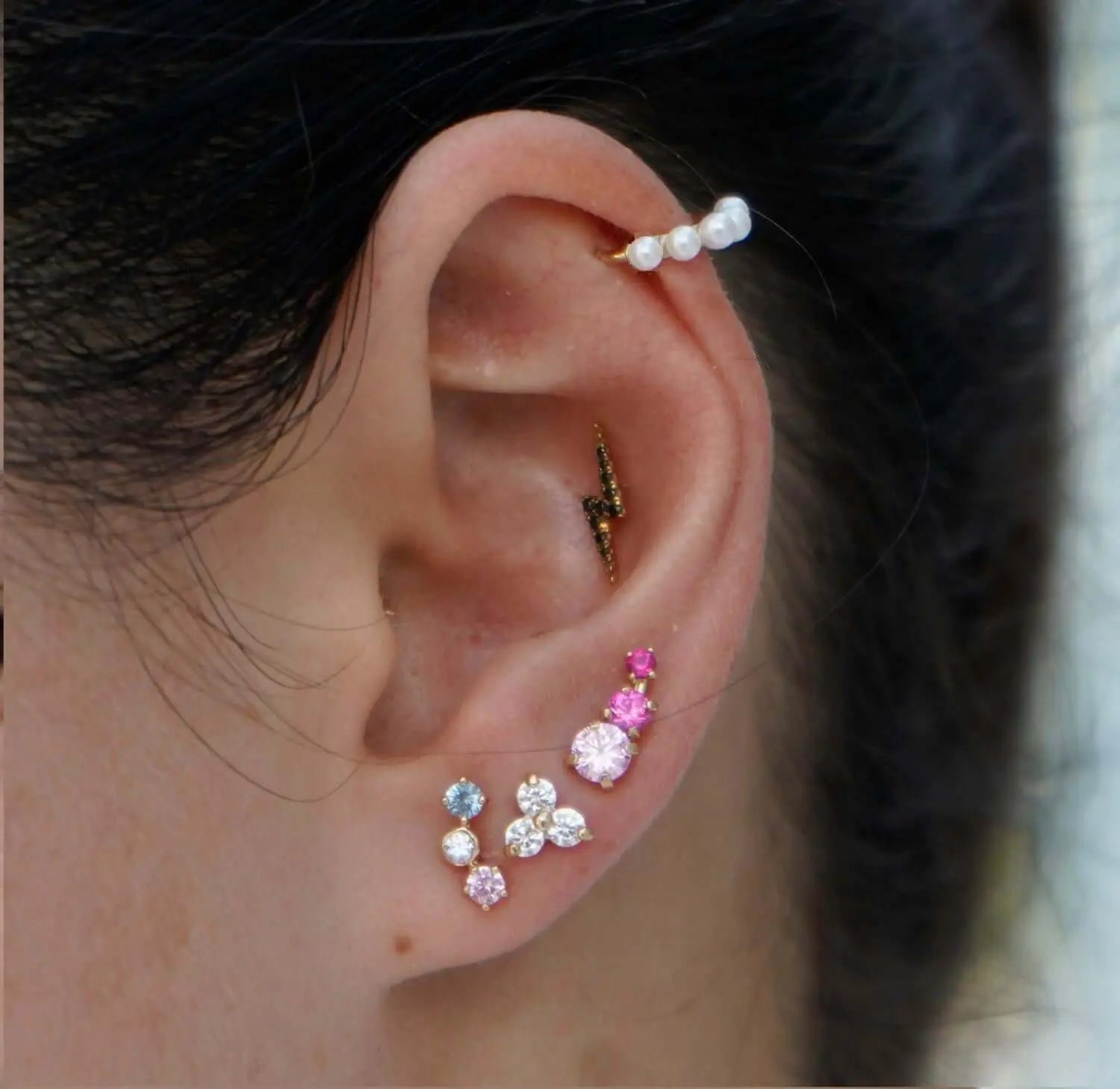 Ideal para segundos piercings, estos pequeños pendientes crawler ofrecen una alternativa moderna y única a los tradicionales pendientes de botón. Sus audaces tonos rosa fucsia y rojo los hacen destacar como una opción chic y moderna para cualquier adolescente o adulto joven a la moda.