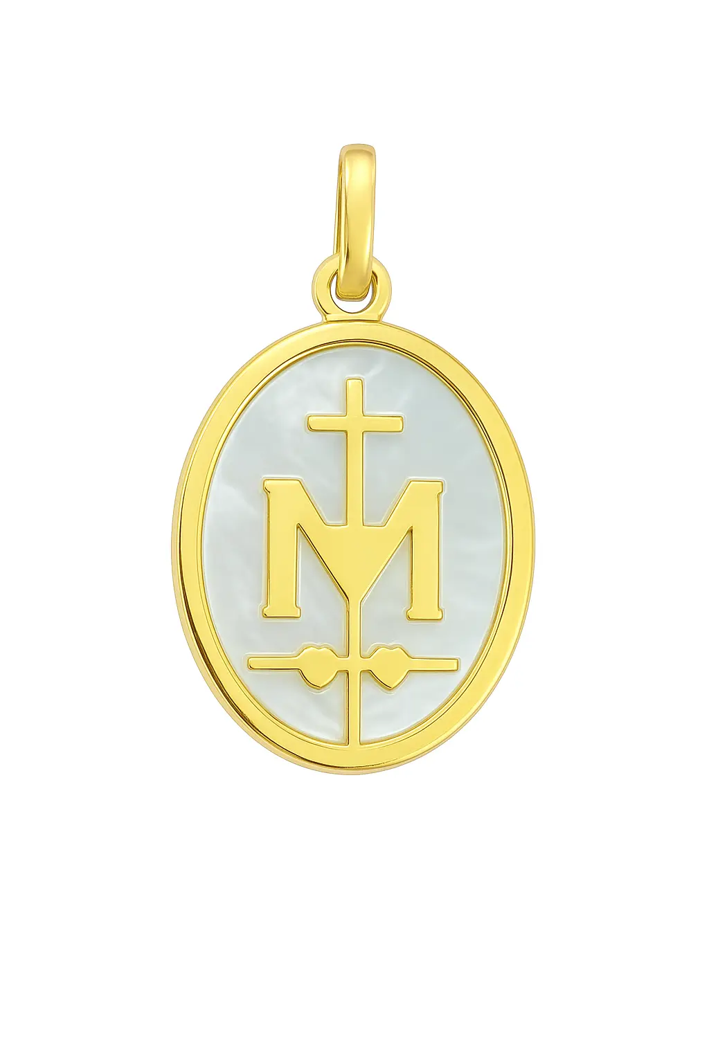 Descubre la belleza divina de la Medalla Milagrosa de Nácar en Oro Amarillo Macizo de 18K, una verdadera obra maestra que une profundidad espiritual con una artesanía inigualable. Esta exquisita pieza mide 0.85 x 0.68 pulgadas y se extiende a 1.24 pulgadas con el asa, mostrando una meticulosa atención al detalle. La pieza central presenta el diseño de la Virgen Milagrosa, exquisitamente tallado en nácar y montado en un bisel hipoalergénico de oro amarillo macizo de 18K.