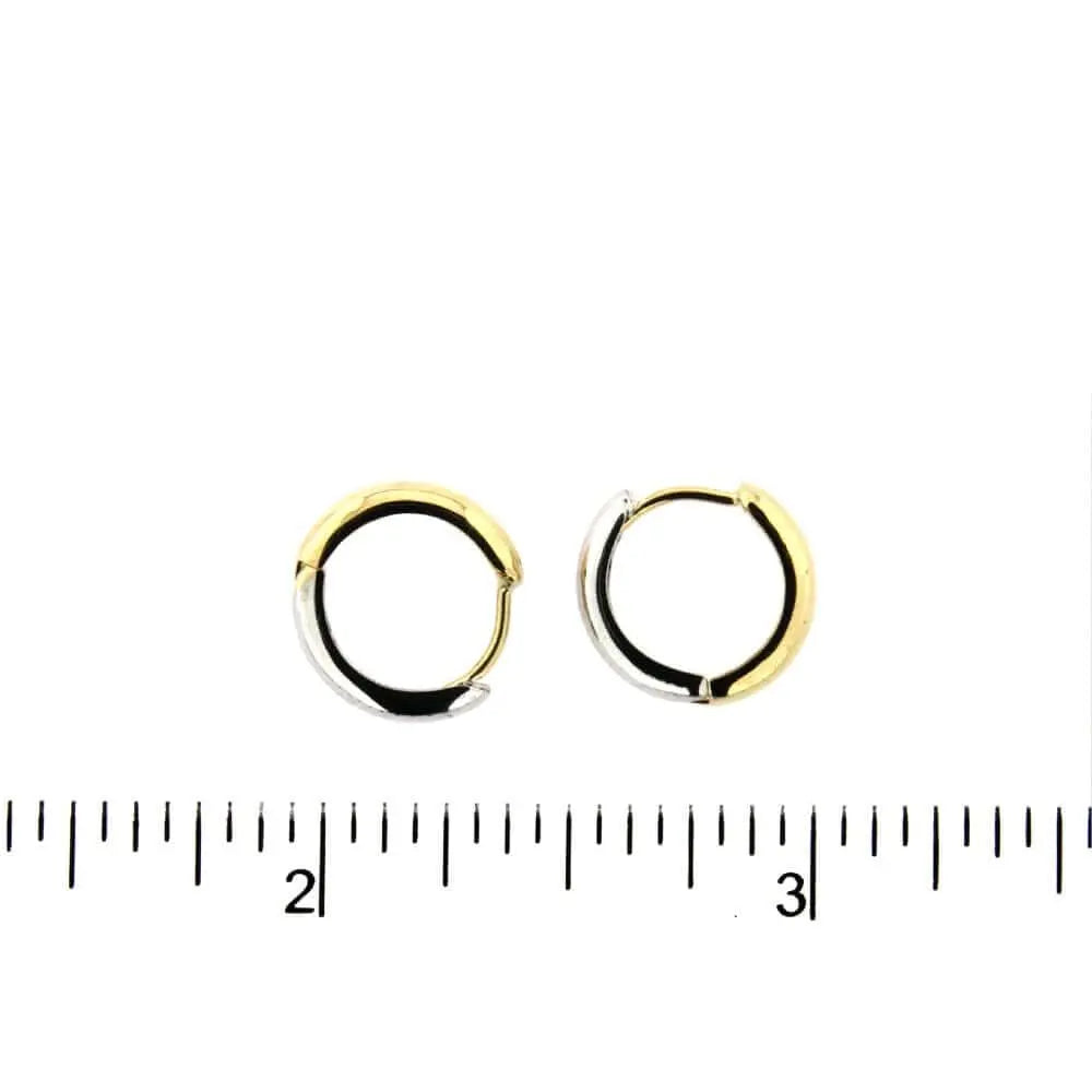 Eleva tu colección de joyas con nuestros pendientes huggie pequeños de contorno liso bicolor en oro 18K. Estos versátiles pendientes tienen un diámetro de 0.50 pulgadas (12 mm) y un perfil delgado de 0.12 pulgadas (3 mm), ofreciendo un equilibrio perfecto entre elegancia y comodidad. Fabricados en oro macizo hipoalergénico de 18K, estos pendientes son ideales para orejas sensibles, garantizando estilo y seguridad.