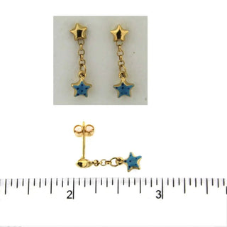 Pendiente colgante de flor con lunares de esmalte azul en oro amarillo de 18K (26mm x 5mm)