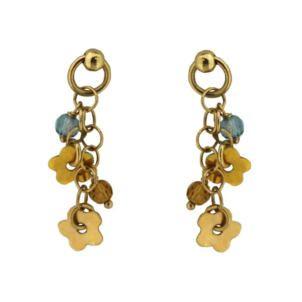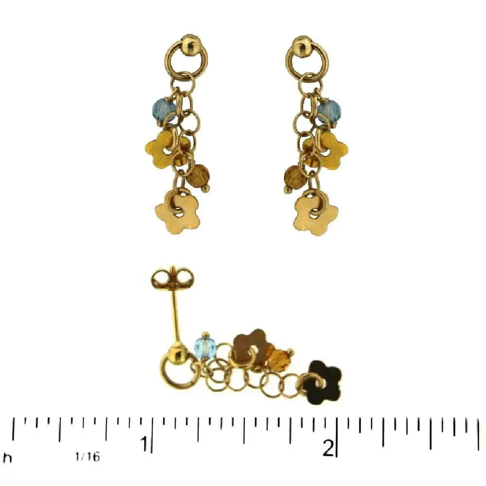Encantadores pendientes colgantes con flores y cristales de oro amarillo de 18K
