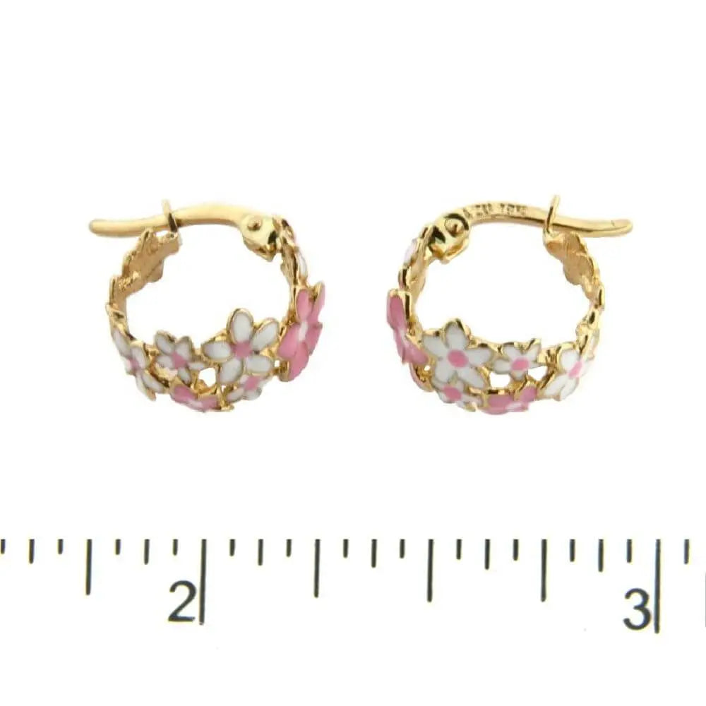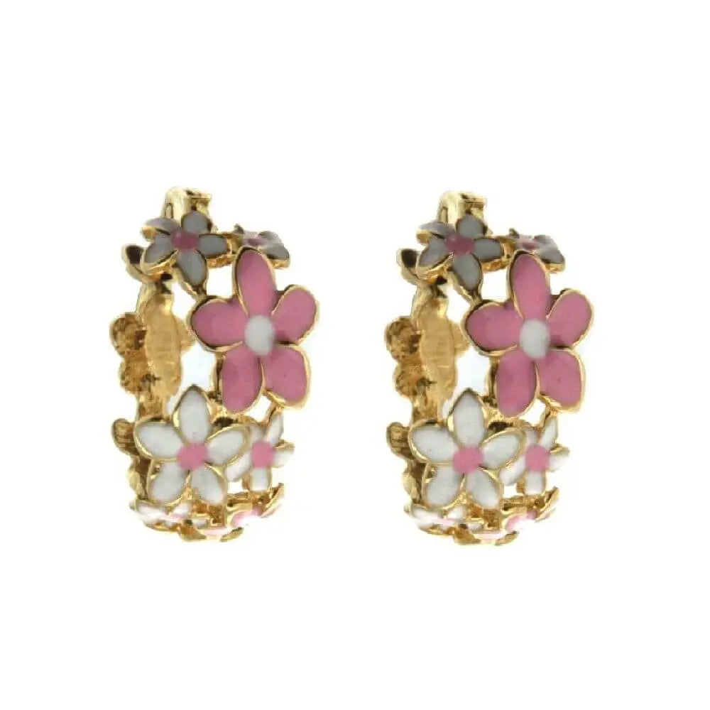 Aros de flor con esmalte rosa en oro amarillo de 18K (13mm / 7mm de ancho de flor)