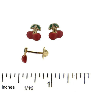 Estilo Dulce: Pendientes de Cierre de Rosca con Esmalte de Cereza en Oro Amarillo Macizo de 18K