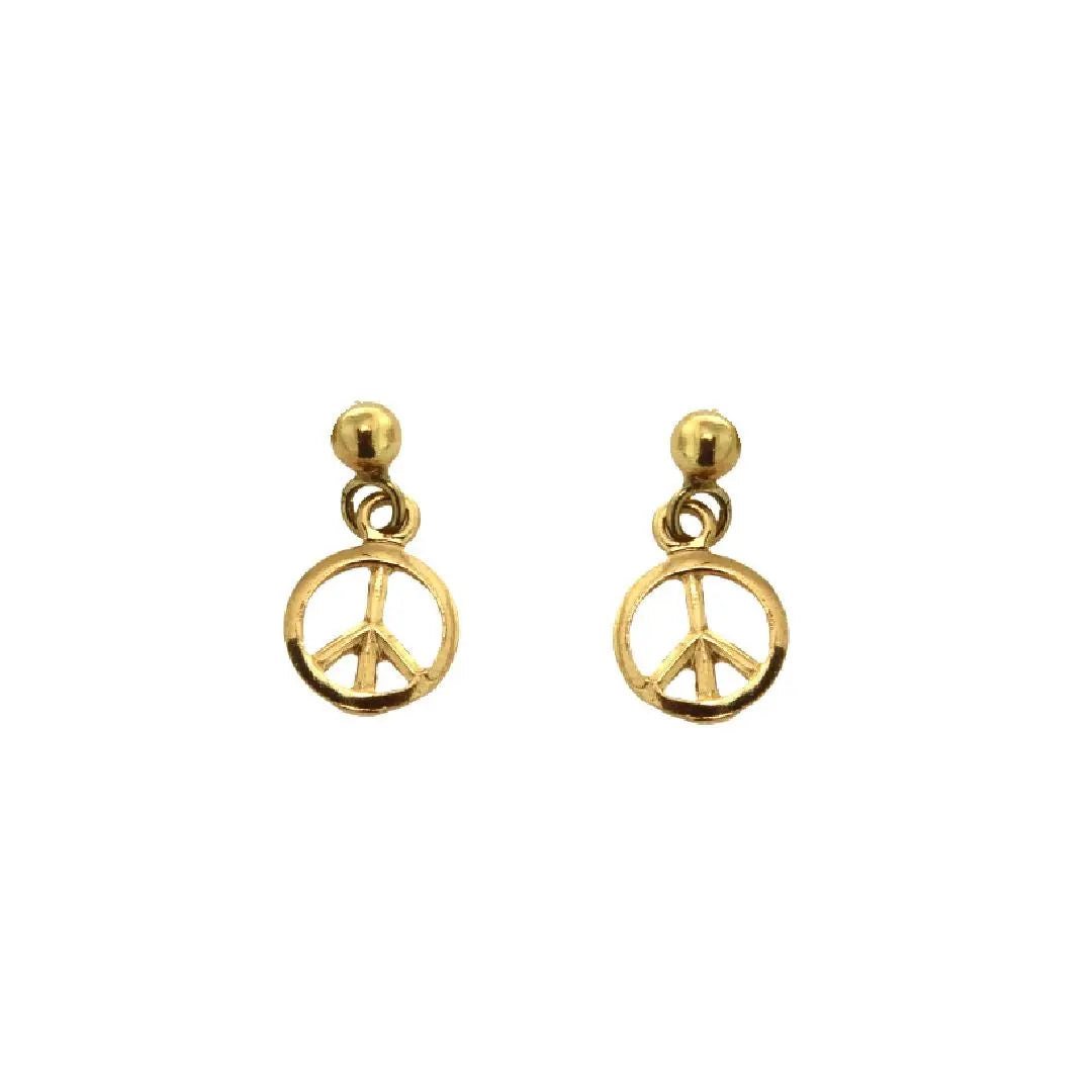 Desata paz y estilo con nuestros cautivadores pendientes colgantes de poste con símbolo de la paz en oro amarillo macizo de 18K. Miden 0.55 x 0.27 pulgadas, estos pendientes hipnotizantes están diseñados para adornar a niñas de 7 años en adelante. Elaborados con oro amarillo hipoalergénico de 18K, ofrecen un uso lujoso y cómodo, siendo libres de plomo y níquel. Cada par viene cuidadosamente empaquetado en una encantadora caja y bolsa de regalo Amalia, lo que lo convierte en una elección perfecta para sorpresas encantadoras. Eleva su declaración de moda con estos exquisitos pendientes colgantes de poste, que capturan hermosamente la esencia de la paz y emanan elegancia artística.