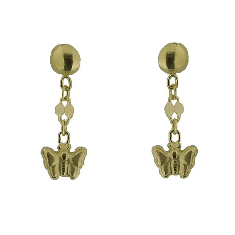 Abraza la belleza de la naturaleza con nuestros pendientes colgantes mini de mariposa brillantes en oro amarillo de 18K. Estos encantadores pendientes presentan un delicado diseño de mariposa, con medidas de 0.60 x 0.22 pulgadas, perfectos para añadir un toque de fantasía a cualquier atuendo. Diseñados para niñas de 4 años en adelante, estos pendientes están fabricados con oro amarillo macizo hipoalergénico de 18K, garantizando que estén libres de plomo y níquel para un uso seguro y cómodo. La parte superior tiene un círculo pulido y abultado, y una cadena brillante cuelga del círculo, culminando en un colgante de mariposa satinada y brillante.