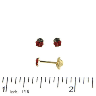 Pendientes diminutos con cierre de tornillo cubiertos de mariquita roja esmaltada en oro amarillo de 18k
