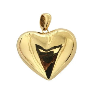 Colgante grande de corazón hinchado brillante de oro amarillo macizo 18K