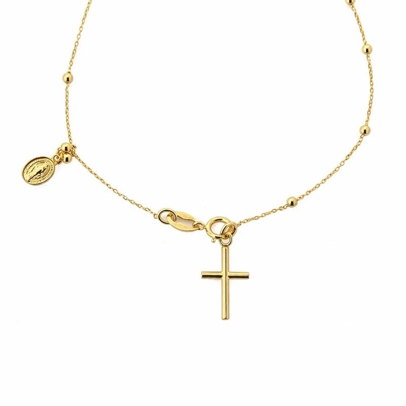 Experimenta la belleza de la fe con nuestra exquisita pulsera de denario del rosario fina en oro amarillo macizo de 18K, que presenta una cruz colgante y una Medalla Milagrosa. Elaborada en Italia con oro amarillo hipoalergénico de 18K, esta pulsera combina elegancia con significado espiritual.