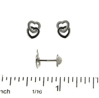 Pendientes de doble corazón con cierre de rosca cubierto de oro blanco macizo de 18K
