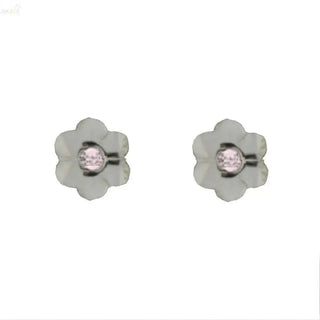 Pendientes de botón con cierre de rosca de flor de circonia rosa de oro blanco macizo de 18K