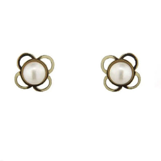 Pendientes de perla con tornillo, flor de hoja abierta, oro amarillo de 18K