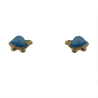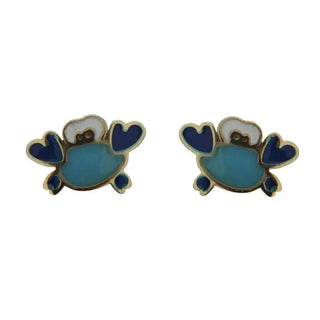 Pendientes de tornillo con cangrejo de esmalte azul de oro amarillo macizo 18K