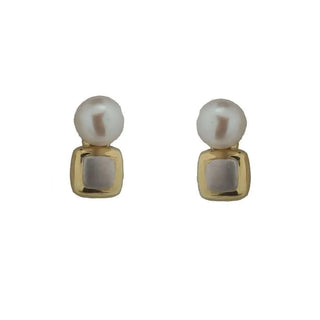 Pendientes cuadrados con perla cultivada y cierre de tornillo cubiertos de oro de 18K