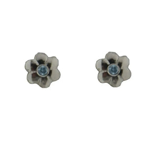 Pendientes de flor con circonia azul y cierre de tornillo en oro blanco macizo de 18K