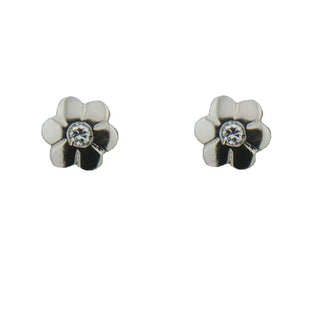 Pendientes de flor de oro blanco de 18K con circonia blanca y cierre de tornillo