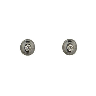 Pendientes de botón con cierre de tornillo, bisel de circonia cúbica, oro blanco de 18K