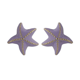 Pendientes con cierre de tornillo cubiertos de estrella esmaltada lavanda de oro de 18K