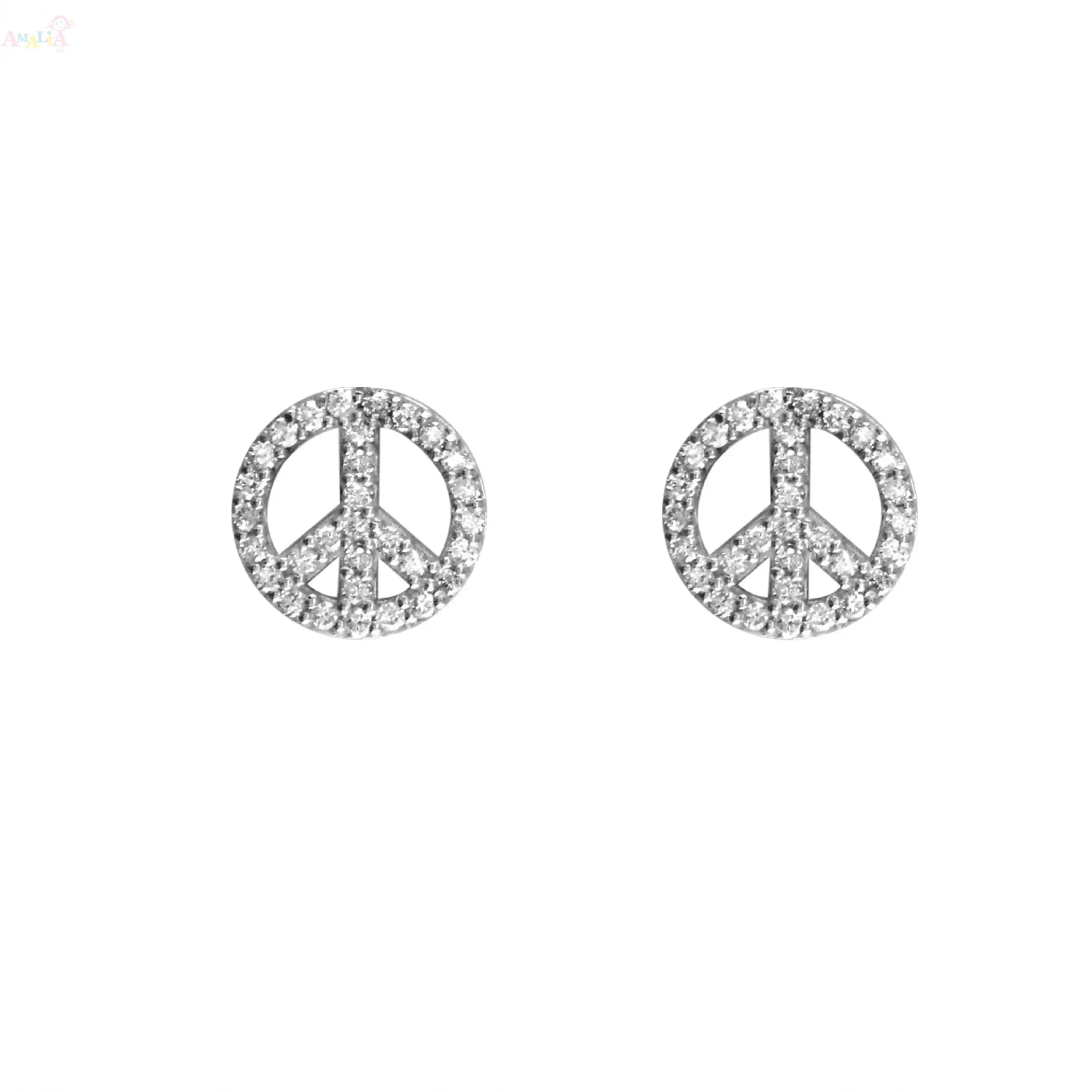 Compra ahora para abrazar la belleza simbólica y el diseño elegante de estos impresionantes Pendientes de Signo de la Paz con Pequeños Diamantes en Oro Blanco Macizo de 18K, y añade un toque de encanto atemporal a tu colección de joyas.