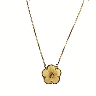 Collar ligero abierto de flores y corazones de oro amarillo macizo 18K