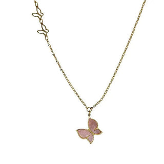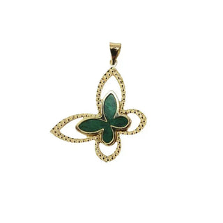 Pendientes con cadena doble de mariposa pulida de oro amarillo macizo 18K