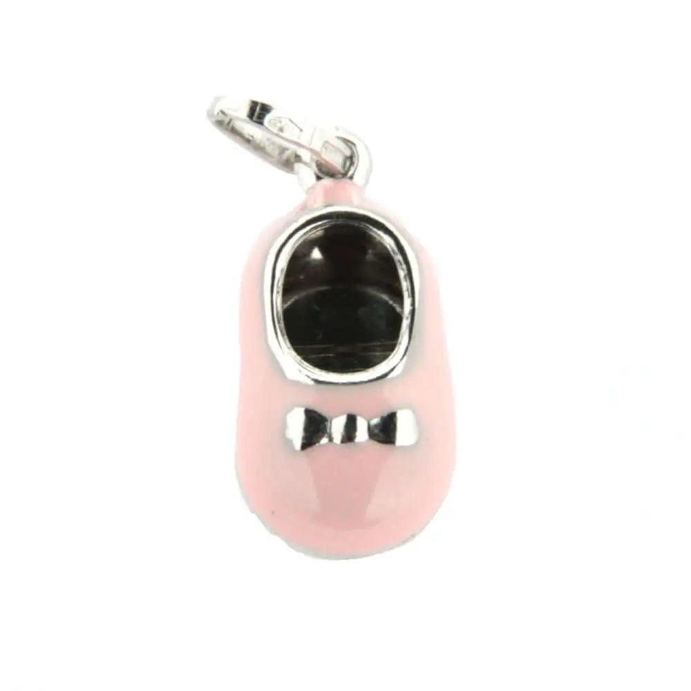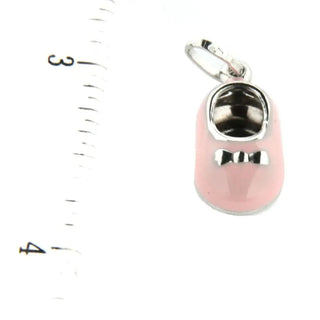 Charm de Zapato con Esmalte Rosa en Oro Blanco de 18K (15mm X 10mm/25mm con Asa)