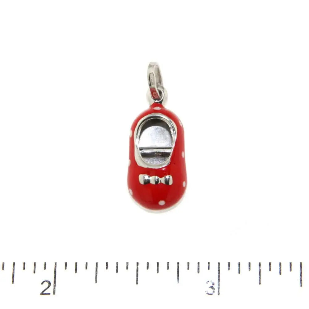 Charm de zapato con esmalte rojo y lunares en oro blanco de 18K (15mm X 10mm/25mm con asa)