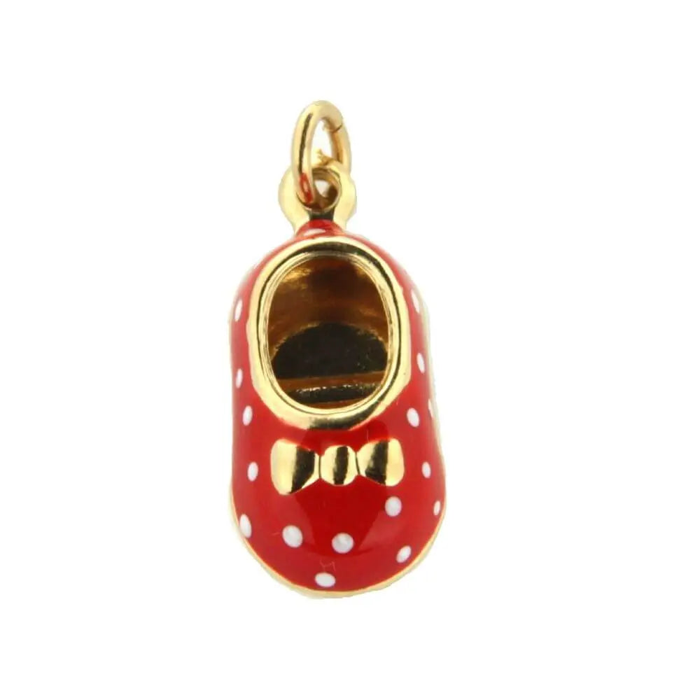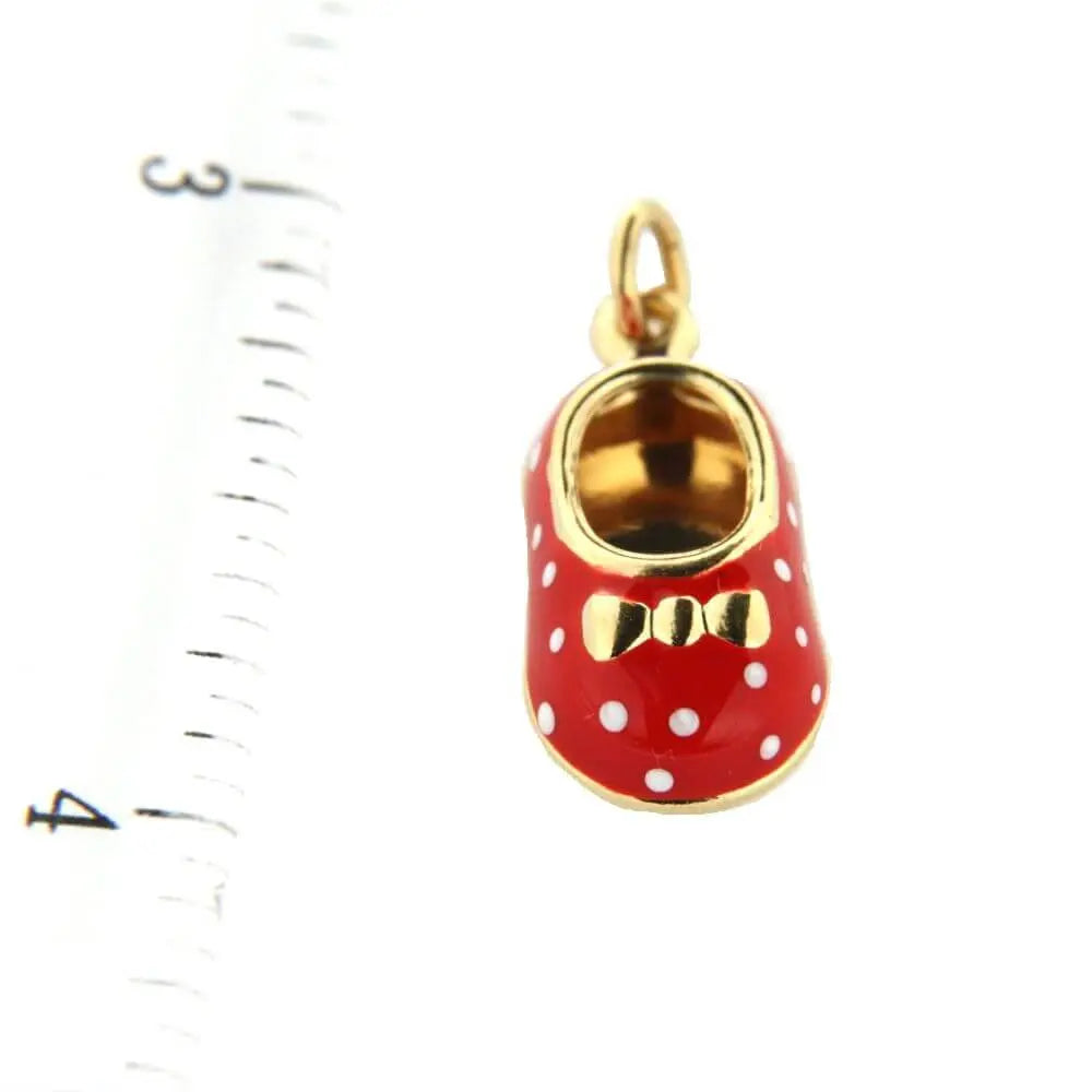 Charm de zapato con esmalte rojo y lunares en oro amarillo de 18K (15mm X 10mm/25mm con asa)
